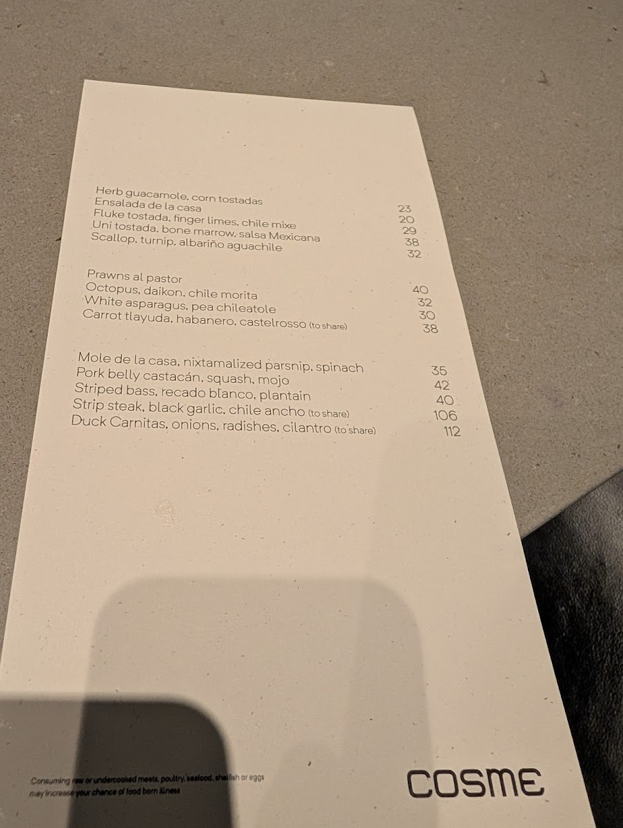 Guests rave about the warm, attentive service and exquisite mezcal options, creating a dining experience that is both memorable and celebratory. Cosme invites you to savor a new era of Mexican dining!